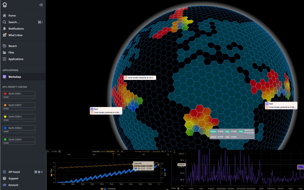 Namor’s Coral Intelligence MVP delivers real-time alerts, AI-powered forecasts, and in-field hexascoped guidance. Developed in collaboration with leading scientists and built using Palantir Foundry, the system was first deployed in Costa Rica.